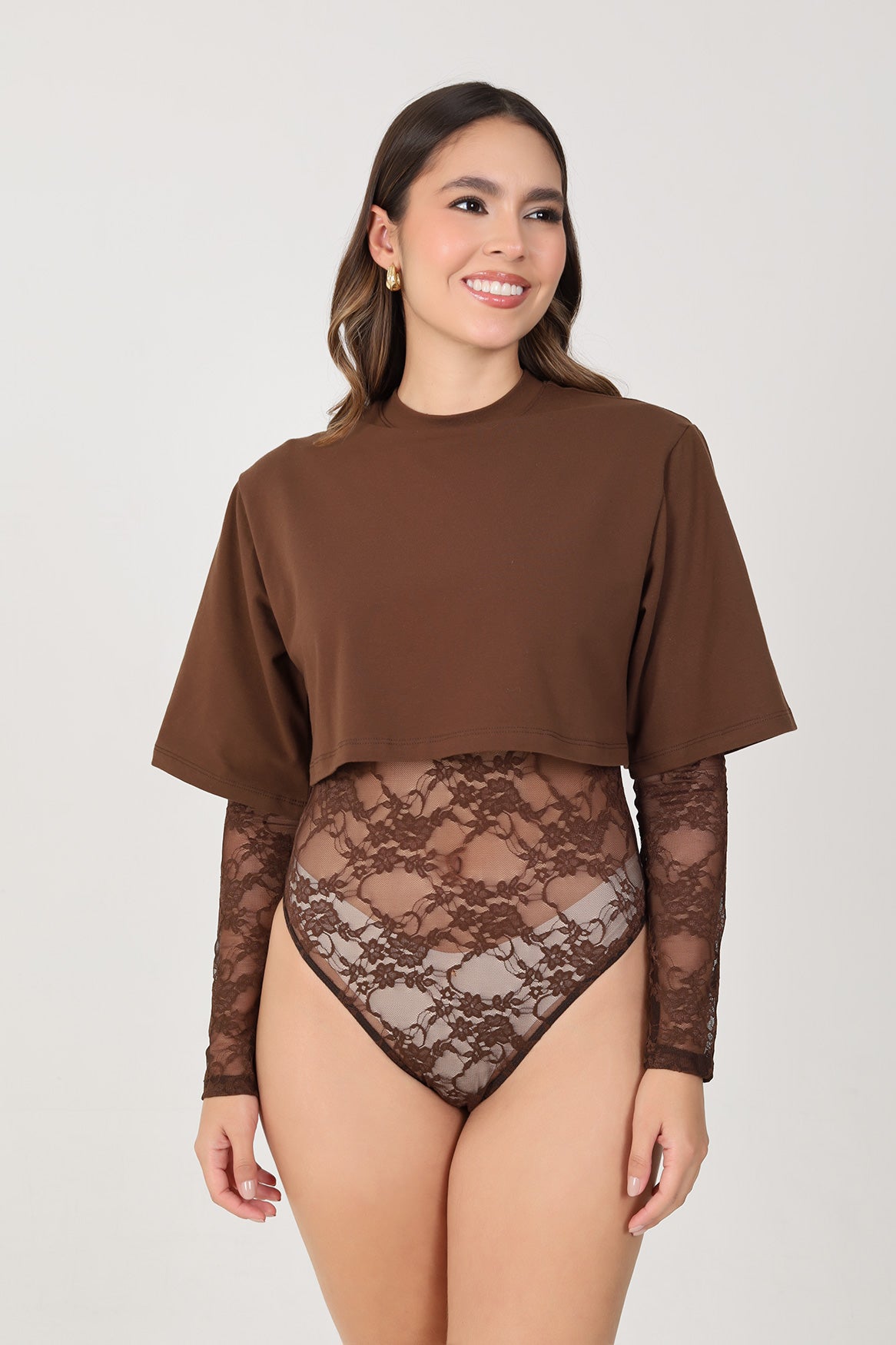 Body con encaje premium y transparencias. La pieza más femenina y sutilmente sexy de tu armario para crear looks de alto impacto.