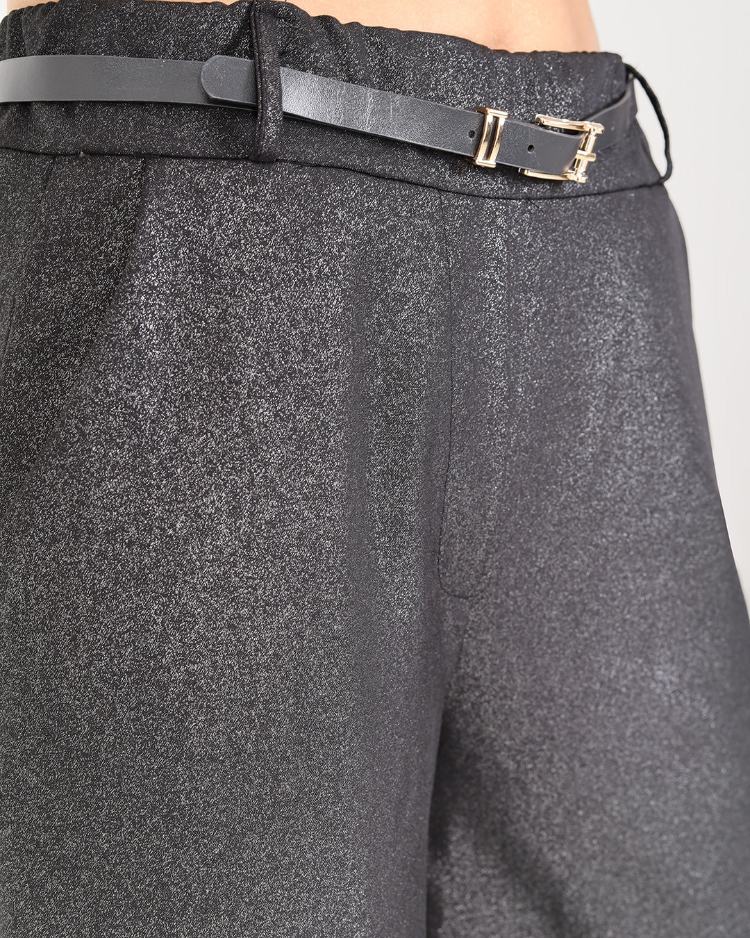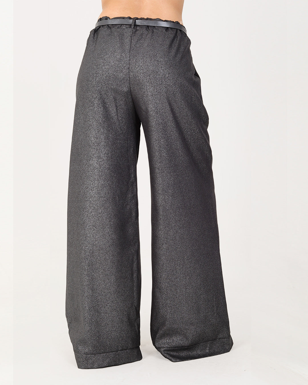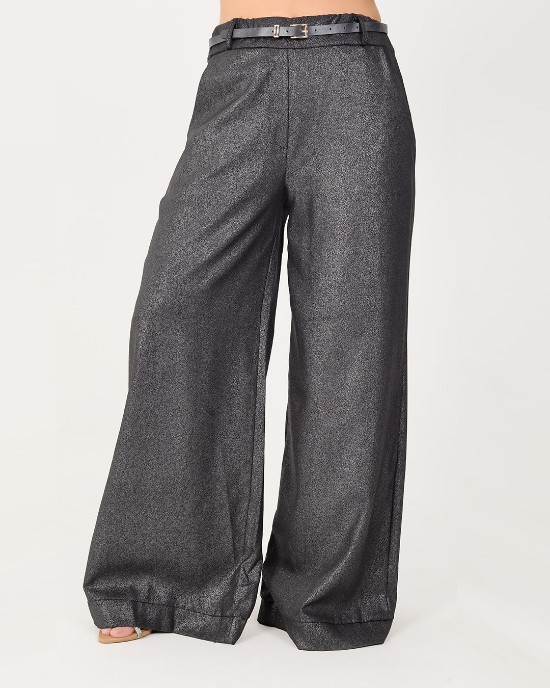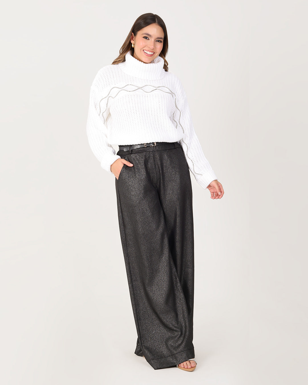 Lujo y elegancia en un corte palazzo estructurado. Brillo sutil para destacar en cenas o eventos.